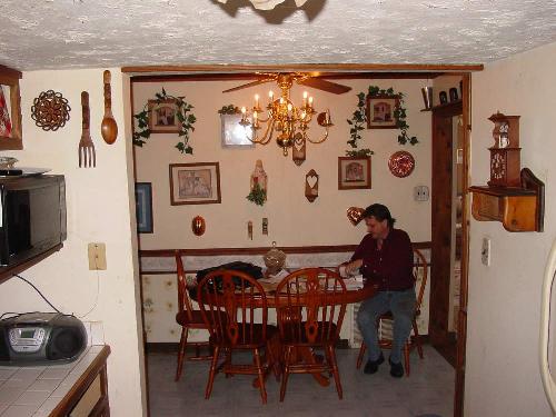 There is at least a 5" drop in the dining room floor area. (see pictures)